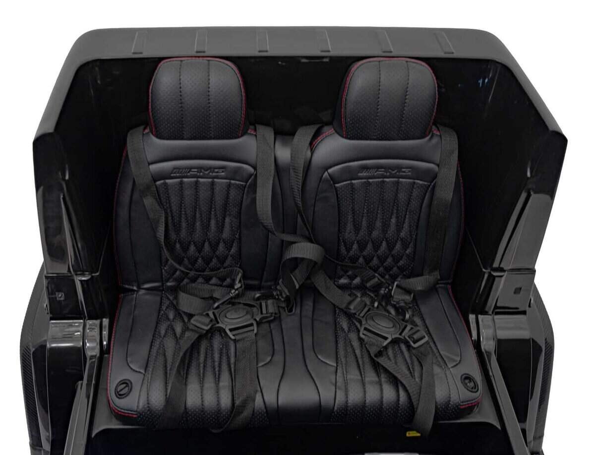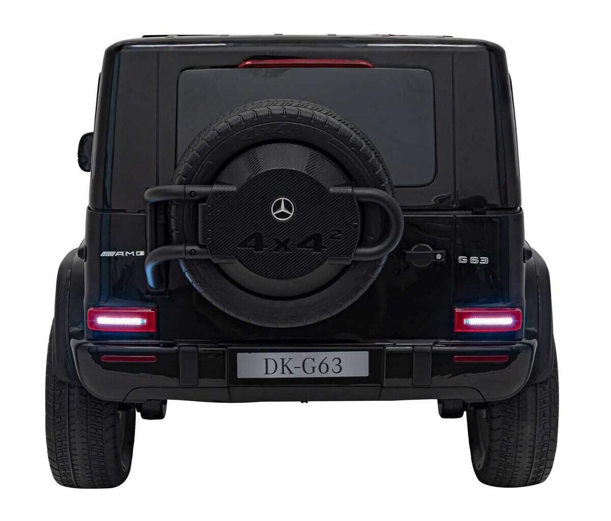 Mașinuță electrică pentru copii, model Mercedes-Benz, negru cu lumini LED albastre, ideală pentru joacă și aventuri.Mercedes Benz G63 AMG XXL vehicle STRONG MP4 Black