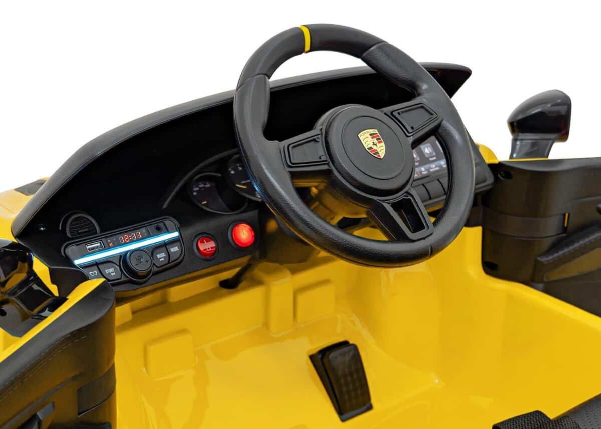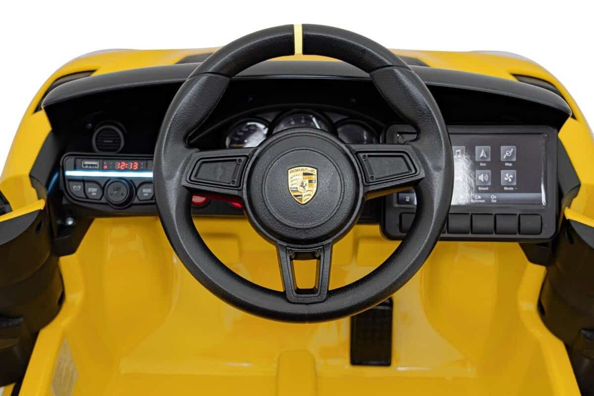 Jucarie masini electrice pentru copii, autovehicul sport galben Porsche.Porsche Spyder RS 718 vehicle Yellow