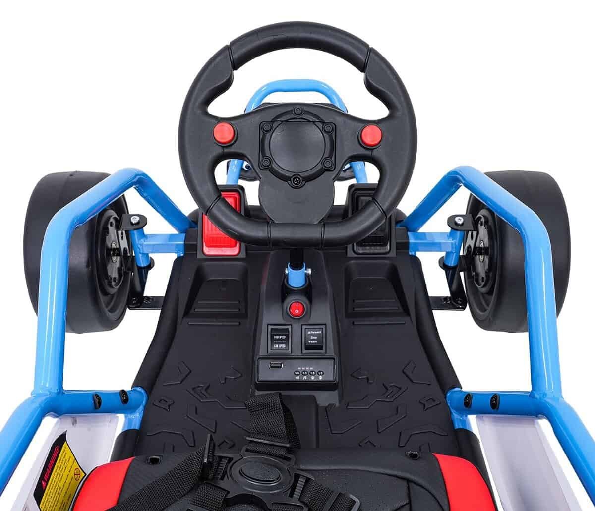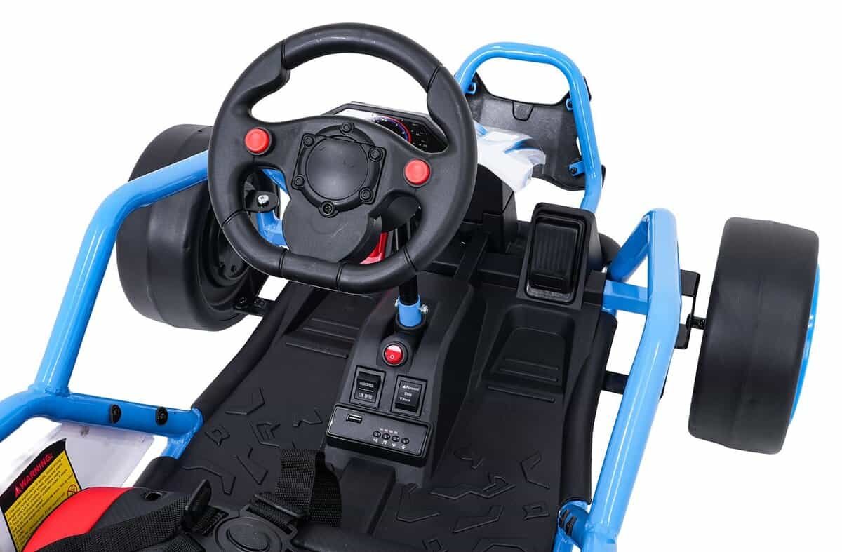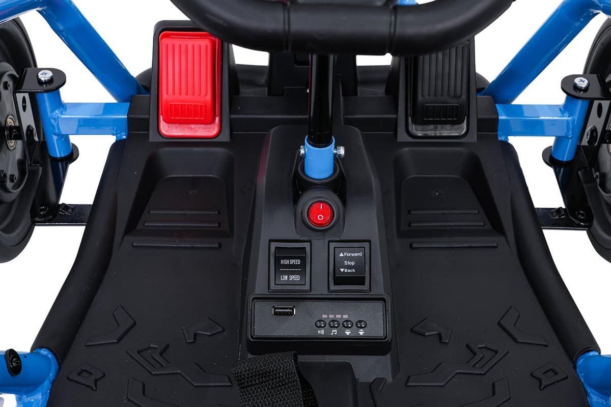 1. Mașină de curse pentru copii cu scaun reclinabil și siguranță maximă.TORNADO Gokart Vehicle with Drift Function Blue