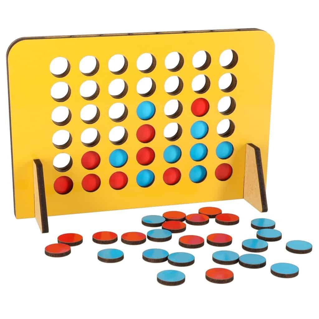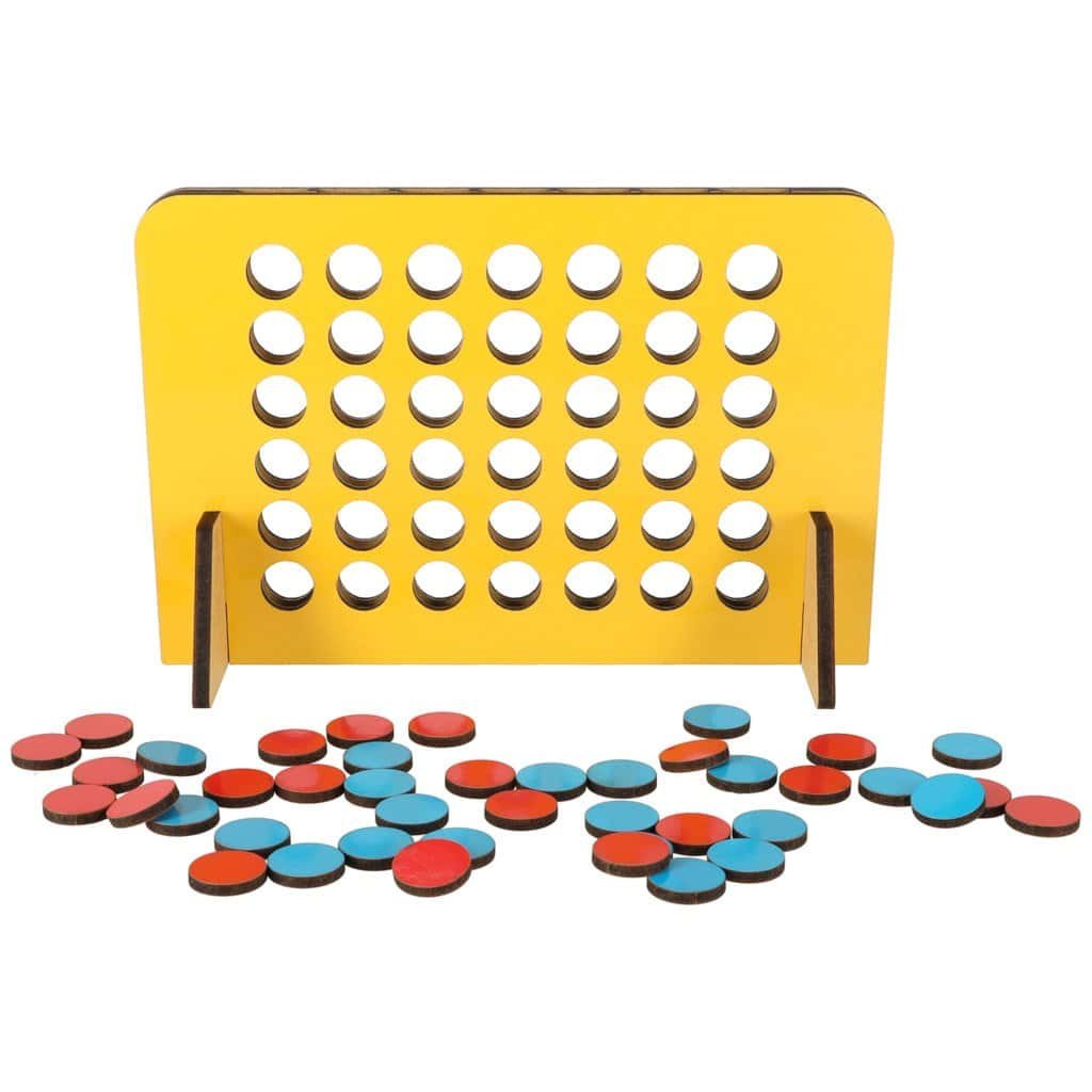 Un joc unic din lemn pentru 2 persoane. Scopul jocului este de a aranja patru jetoane de aceeași culoare într-un rând (pe verticală, orizontală sau diagonală).