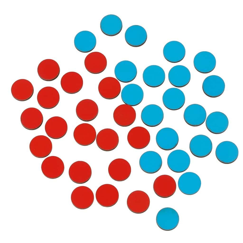 planșă de 21,3 x 14 x 1 cm; suporturi pentru planșă (2 bucăți); jetoane roșii fi 15 mm x 3 mm (21 bucăți); jetoane albastre fi 15 mm x 3 mm (21 bucăți); foaie de instrucțiuni.