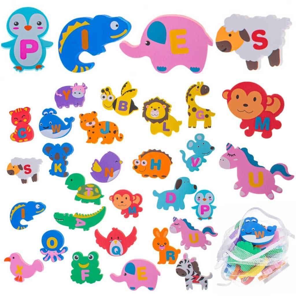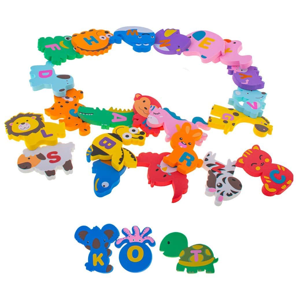 Animale din spumă cu alfabetul sunt o ocazie excelentă de învățare - cel mic poate învăța numele animalelor, precum și literele din care pot forma alfabetul sau diverse cuvinte. Deși aceasta din urmă poate fi o provocare chiar și pentru părinți, deoarece niciuna dintre litere nu se repetă.