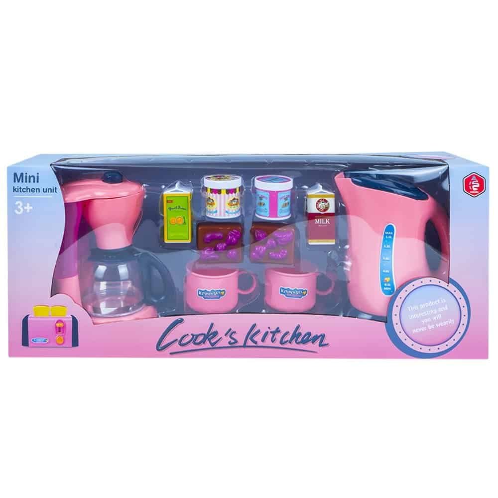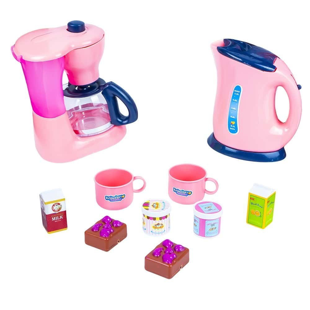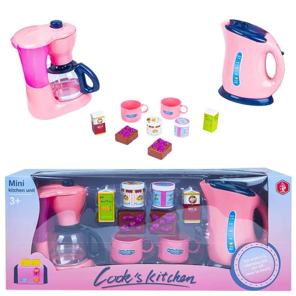 Set aparate casnice (filtru cafea/fierbator) + accesorii bucatarie, asemanatoarea realitatii, incurajeaza jocurile de rol in bucatarie.