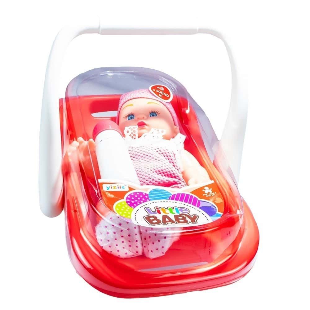 - Pachetul include 1 papusa, 1 landou si 1 biberon. Acest set va diversifica jocul, il va face si mai interesant si mai realist. Copilul va putea hrani papusa, o va legana, venind cu diferite scenarii pentru joc.