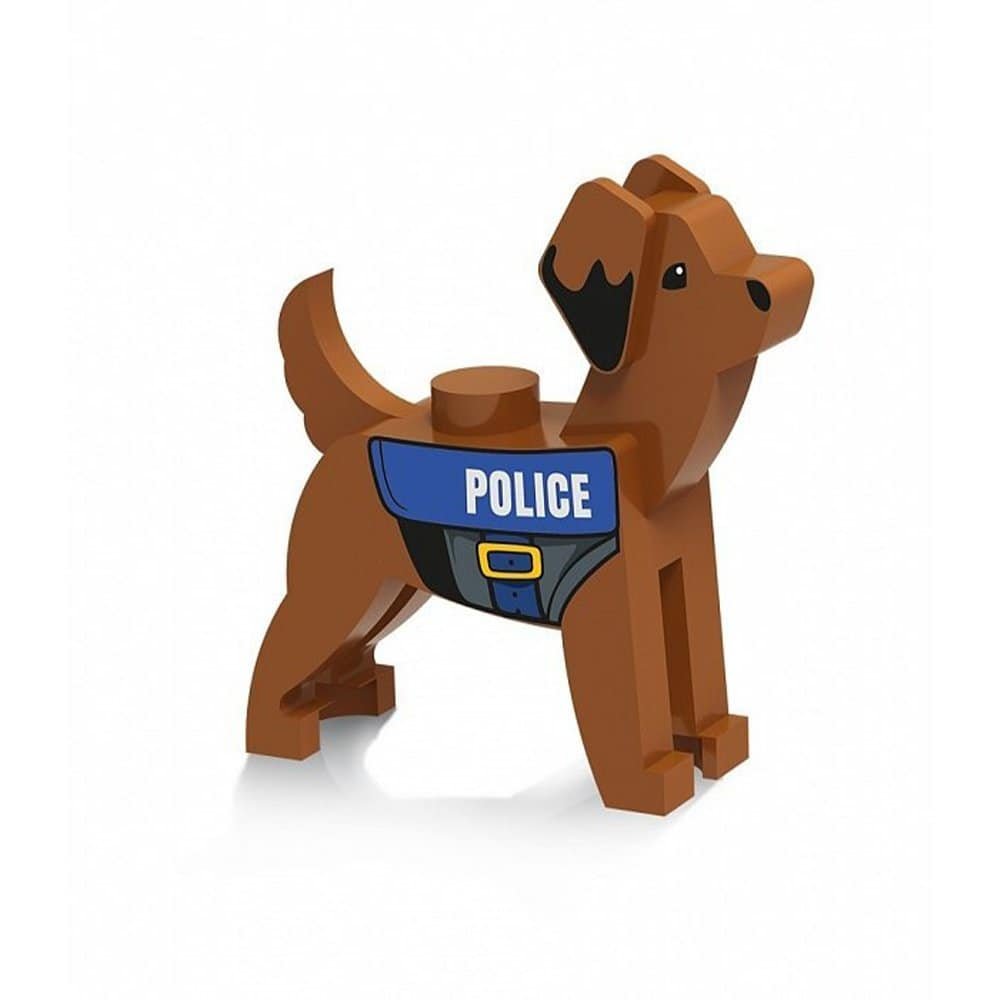 - Jocul include un jeep politie pentru transportul infractorilor, o figurina politist, o figurina catel si o cutie pentru mancare cu os.