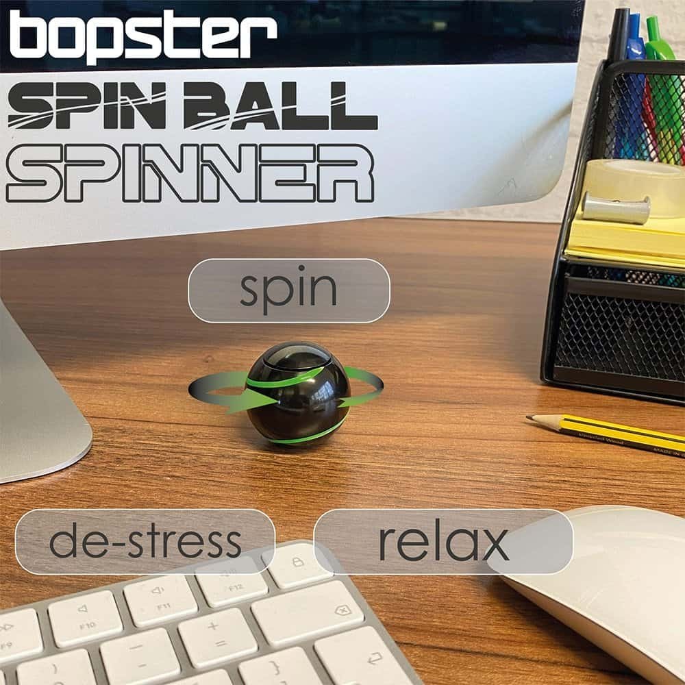 - Bopster Spin Ball fosforescent combina designul simplu, dar modern si constructia sofisticata, oferind o stimulare senzoriala deosebita. Astfel, corpul principal este din aluminiu, material de calitate, durabil, perfect pentru utilizare indelungata, iar componentele sunt din kirksite, un aliaj pe baza de zinc, cu o turnare foarte precisa. Corpul solid si suprafata neteda, prevazuta cu caneluri, fac interactiunea foarte placuta. Suprafata jucariei este stantata BOPSTER indicand autenticitatea produsului si oferind un plus de stil si identitate vizuala in designul sau. Finisajul protector ii sporeste longevitatea si ii ofera un aspect premium. Rulmentul interior asigura timpi de rotire prelungiti. Timpul de rotire depinde de viteza imprimata. Partea inferioara este tesita, astfel incat sa poata fi asezata pe suprafete drepte.