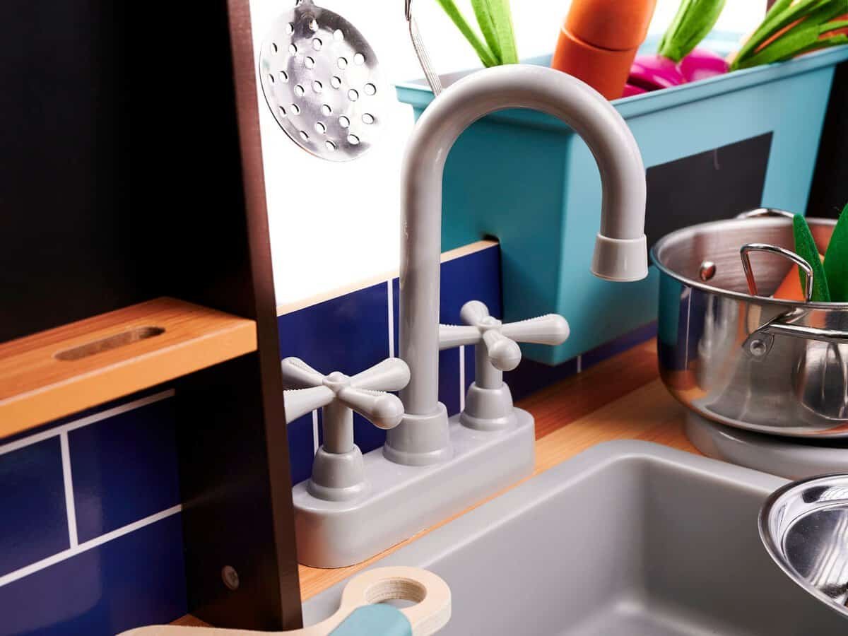 Bucătăria impresionează prin detaliile sale. Culorile discrete și reproducerea fidelă a blaturilor, a dulapurilor și a robinetului îi vor fermeca atât pe copii, cât și pe părinți.