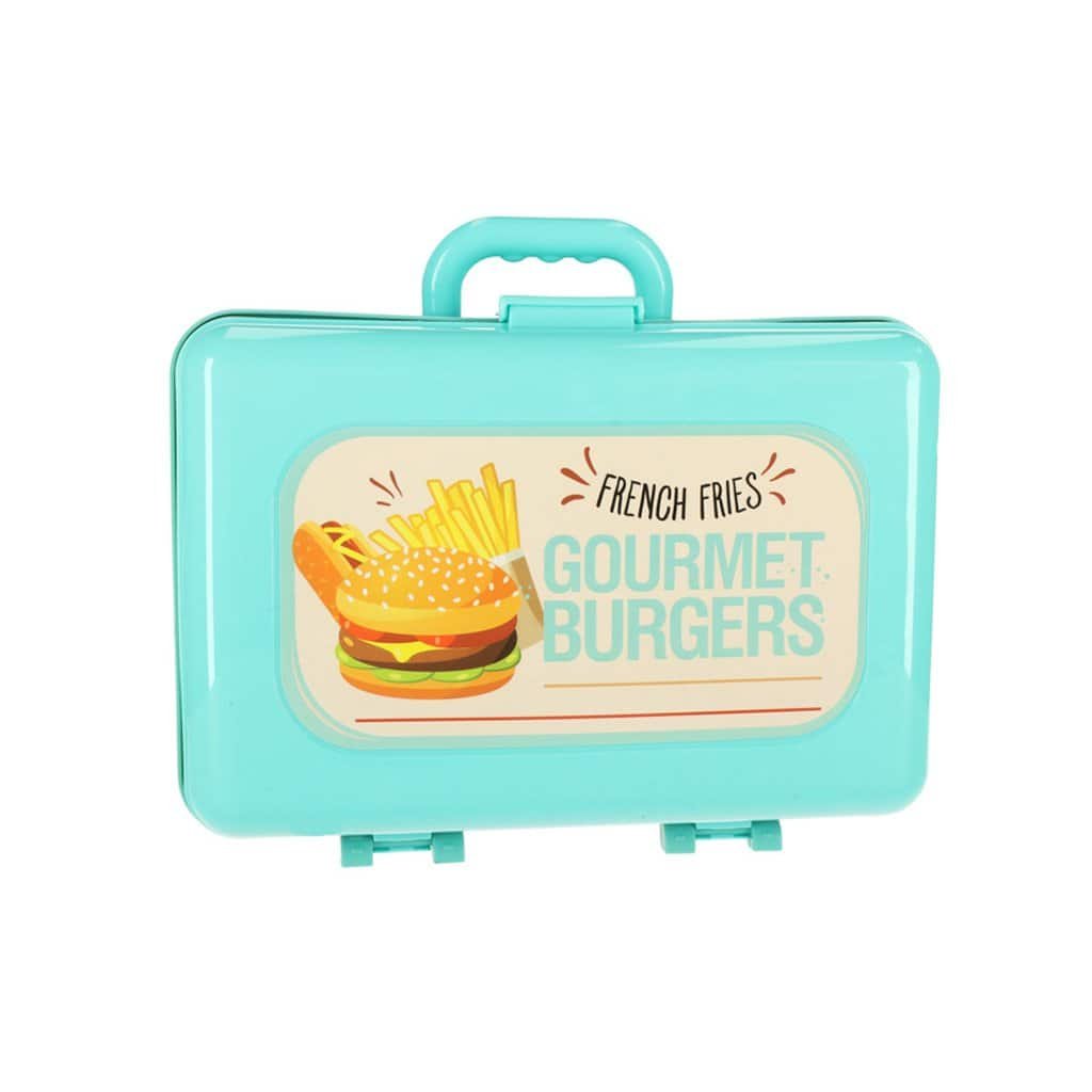 BUCĂTĂRIE PENTRU COPII ÎNTR-O VALIZĂ FAST-FOOD BURGER SET ÎNGHEȚATĂ CARTOFI PRĂJIȚI 55CM
