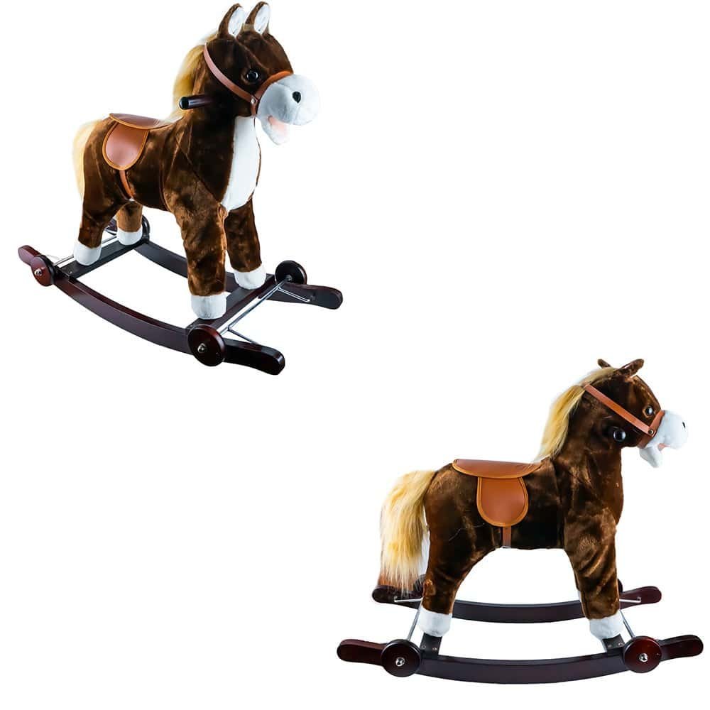 Balansoar pentru bebelusi sub forma de calut, cu sunete, perfect pentru distractia copilului; Este confectionat din plus si lemn finisat; Balansoarul tip calut functioneaza cu baterii, iar prin apasarea urechii acesta fredoneaza o melodie de leagan; Datorita materialelor de calitate din care este confectionat, calutul imita foarte bine realitatea; Balansoarul este sigur, confortabil, iar pentru o siguranta sporita acesta este prevazut cu spatar si o centura de siguranta;