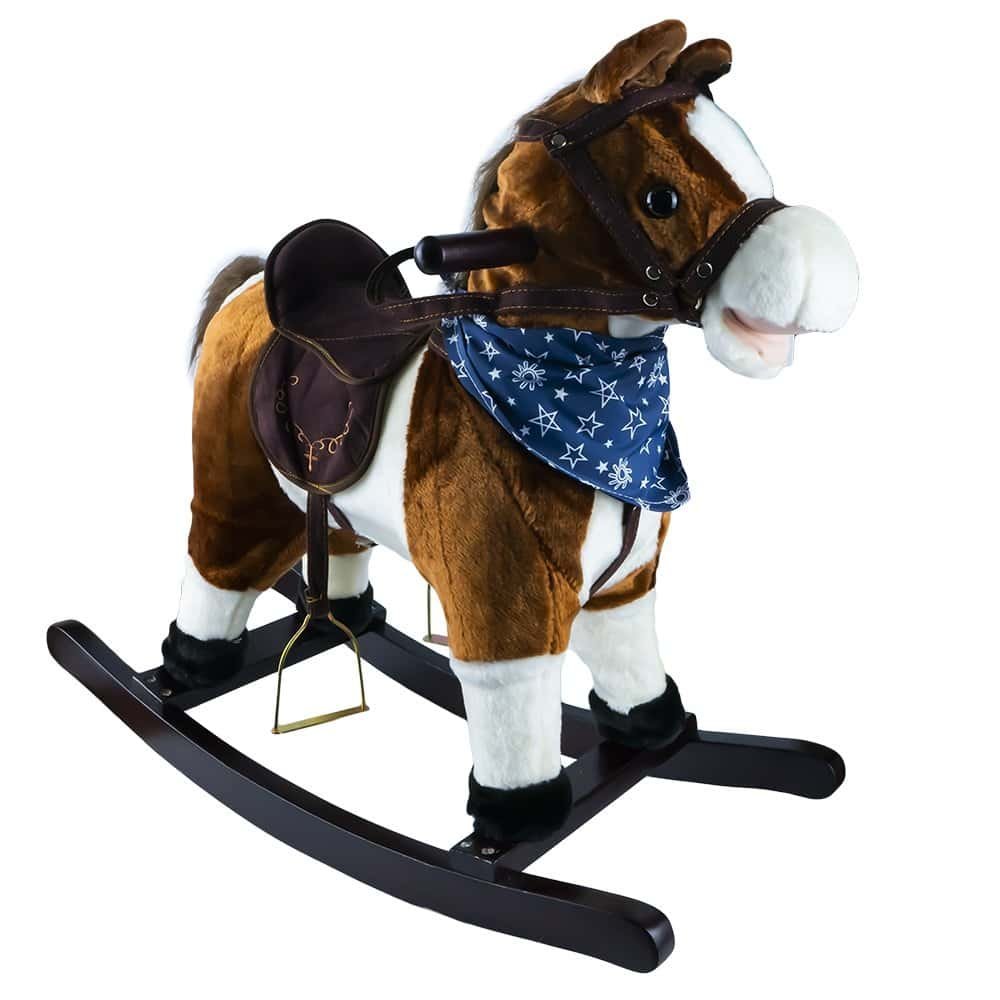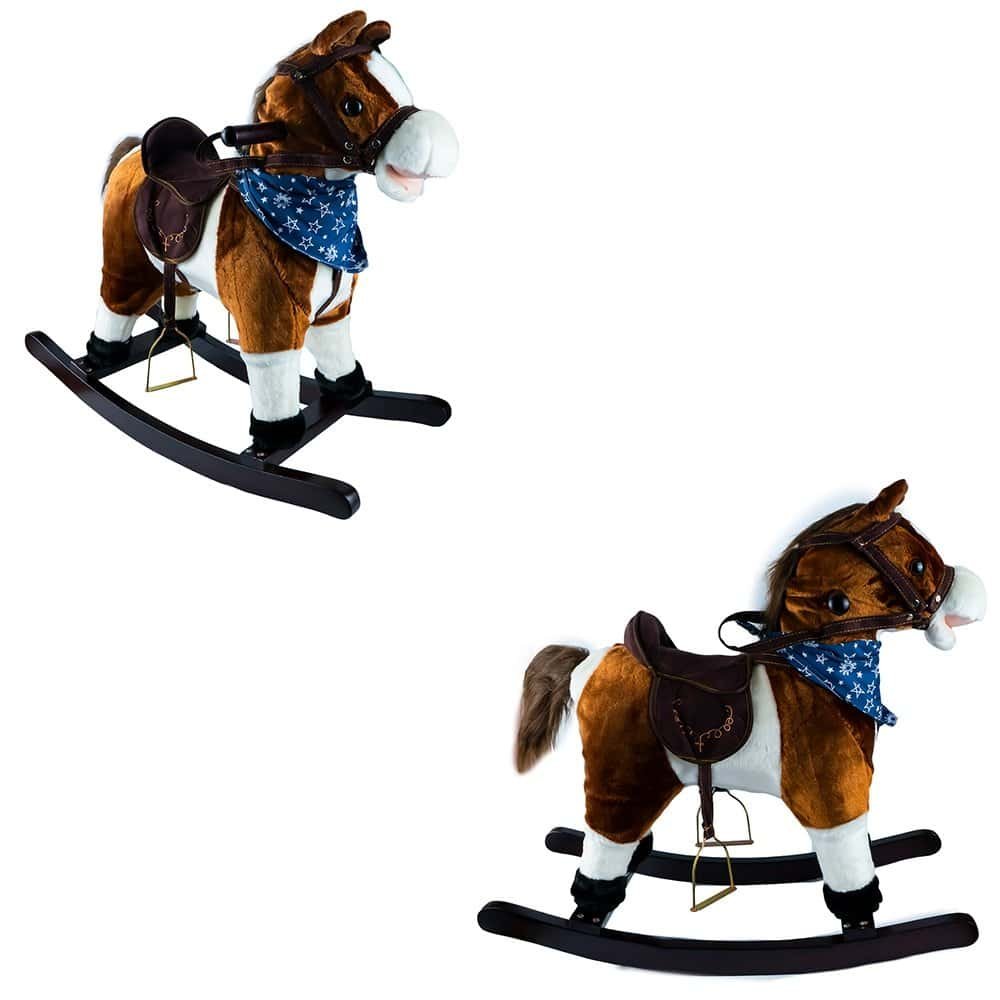 Balansoar pentru bebelusi sub forma de calut, cu sunete, perfect pentru distractia copilului; Este confectionat din plus si lemn finisat; Balansoarul tip calut functioneaza cu baterii, iar prin apasarea urechii acesta fredoneaza o melodie de leagan; Datorita materialelor de calitate din care este confectionat, calutul imita foarte bine realitatea; Balansoarul este sigur, confortabil, iar pentru o siguranta sporita acesta este prevazut cu spatar si o centura de siguranta;