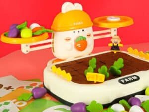 Un iepure adorabil domnește suprem în partea de sus a setului, „păzind" echilibrul. Copilul poate stivui morcovi sau alte obiecte în încercarea de a menține echilibrul sau de a-l perturba în mod deliberat, învățând în același timp elementele de bază ale fizicii și gândirii logice. Setul vine, de asemenea, cu numere speciale - fiecare număr are o greutate adecvată corespunzătoare numărului reprezentat. Acest lucru îi permite copilului mic să experimenteze, comparând greutățile și învățând valorile numerice în practică! Acest joc este excelent pentru a sprijini învățarea numărării și a conceptelor matematice de bază.