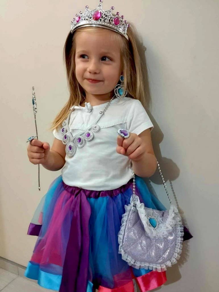 COSTUM DE REGINĂ COSTUM DE PRINȚESĂ COROANĂ GEANTĂ DE MÂNĂ 9 ARTICOLE Vă permite să vă simțiți ca o adevărată vedetă! Datorită numeroaselor elemente suplimentare, va atrage atenția copiilor și adulților! Ideal pentru a vă juca acasă sau la un bal mascat! Fustă Coroană Geantă de mână Sceptru Colier Pereche de cercei Inel x2 Material: poliester, bumbac, plastic Vârsta: 3+ Lățimea fustei: 20-50 cm Lungimea fustei: 25 cm Lungimea sceptrului: 24 cm Ambalaj: 19,5 cm x 29 cm x 6 cm Practic, fiecare fată își dorește să devină o prințesă! Acest costum te va face să te simți ca una! Setul include o fustă, coroană, geantă, sceptru, colier, cercei și inele - tot ce are nevoie o regină! Ținuta potrivită îți va permite să intri în pielea personajului, fie că este vorba de o petrecere acasă sau de o petrecere deghizată! Fiecare moment în costum va fi extraordinar! Produsul este ambalat într-o cutie de carton cu fereastră.Costum de prințesă: