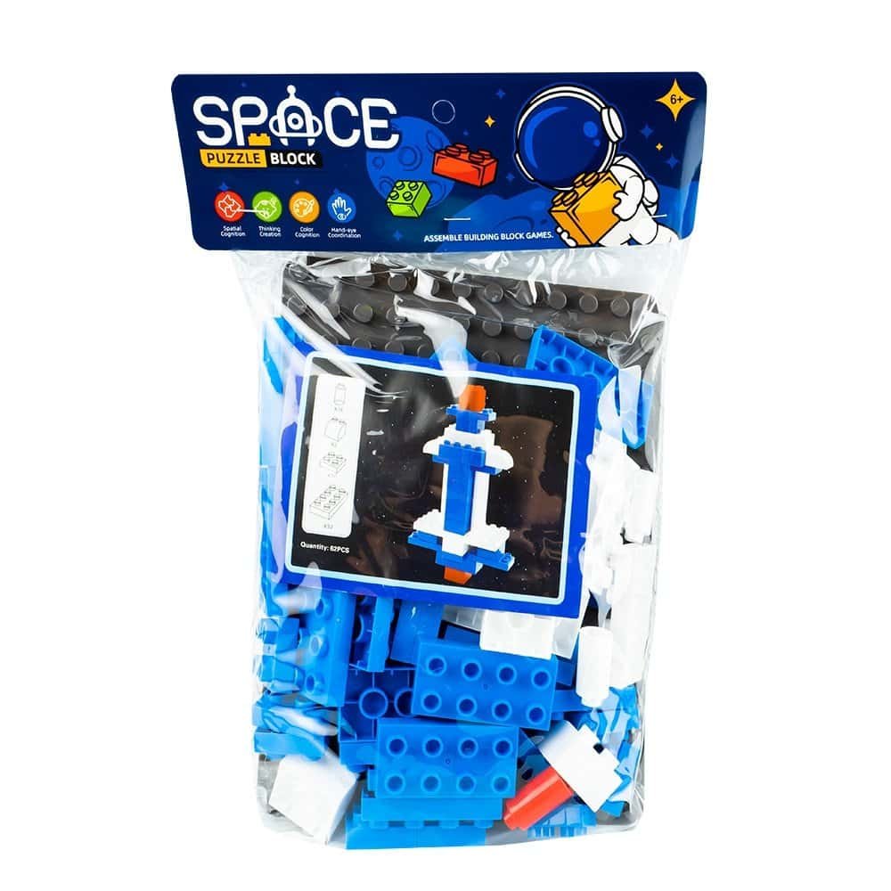 - Setul include 63 piese de constructie si 1 coala imprimata cu diverse modele (cosmonaut, 2 rachete, 3 statii orbitale).