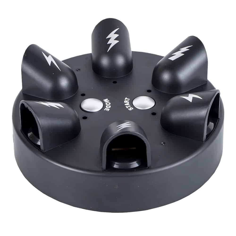 - Jucatorii pun degetul in slotul senzorului, iar indicatorul luminos se roteste. Cand ledul se opreste, jucatorul corespunzator primeste un soc electric. Socul nu este foarte intens si nu dauneaza corpului uman, dar este suficient pentru a va face sa tresariti.