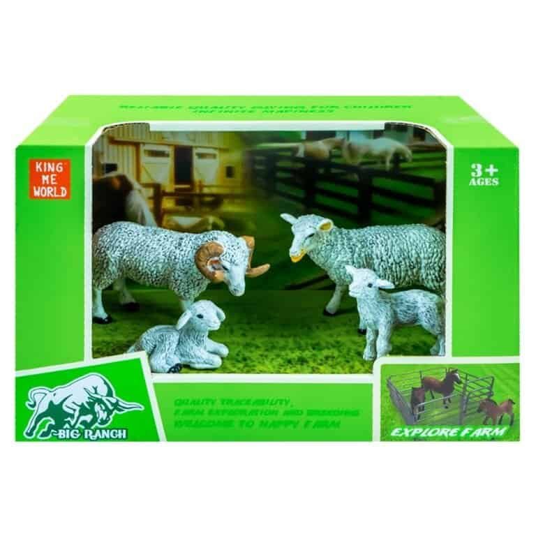 - Setul include 2 x figurine de animal adult: oaie si berbec, 2x figurine de pui de animal, 1 balot de paie si 4 bucati de gard care formeaza prin imbinare un tarc.