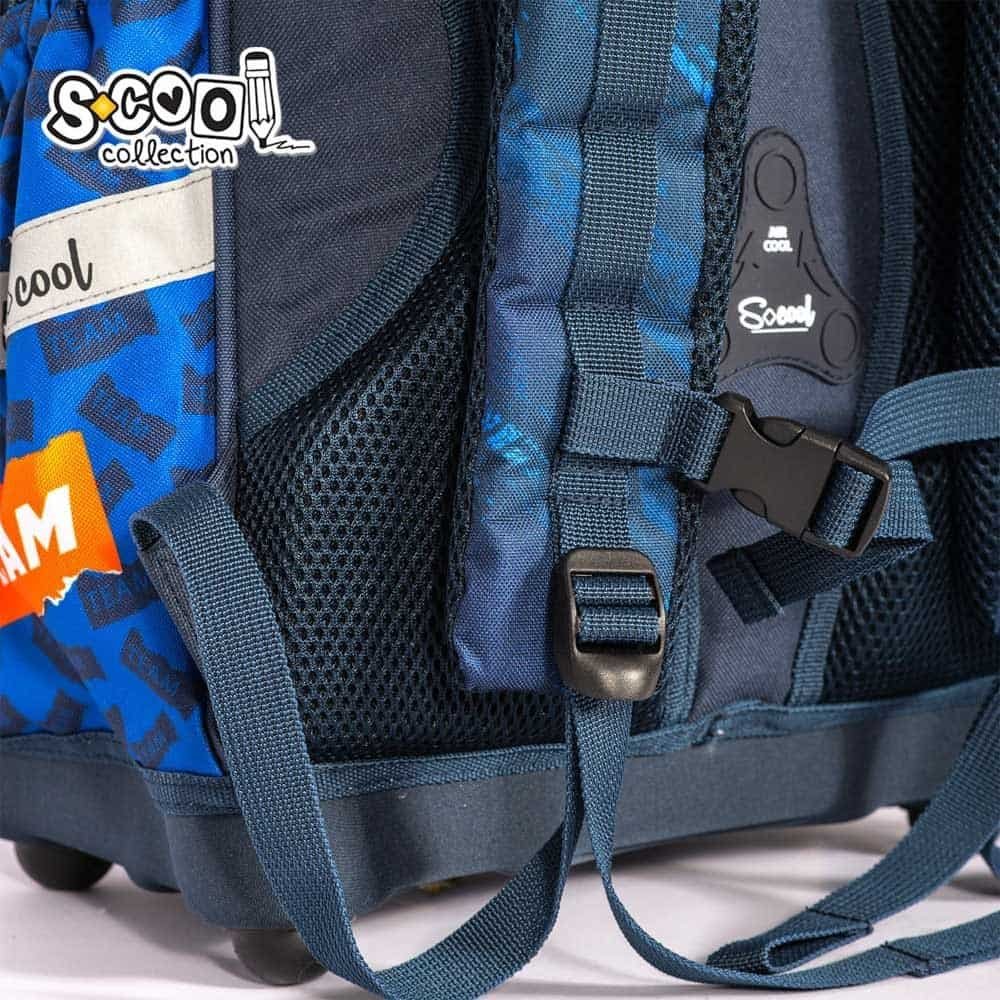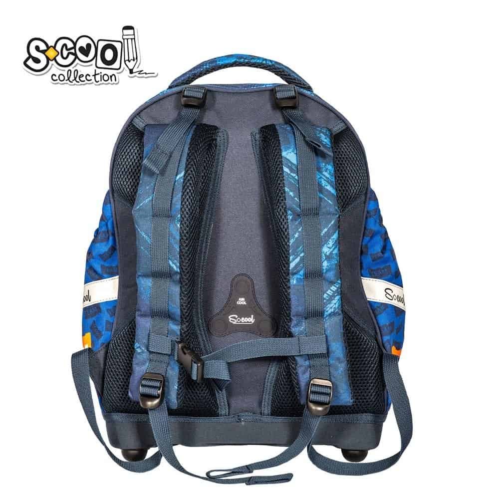 - Ghiozdanul are compartiment principal spatios, 2 buzunare, cel frontal fiind echipat cu organizator si suport pentru chei, inchidere cu fermoar, 2 buzunare laterale, bretelele intarite, buretate, ajustabile, fixate cu catarama, maner buretat, spatele anatomic, buretat, ventilat, 3 benzi reflectorizante 360°, baza din spuma EVA cu 4 picioruse din plastic.