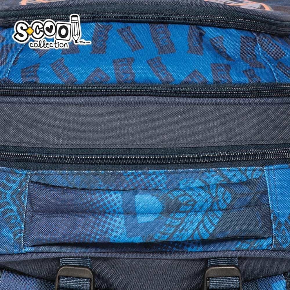 - Ghiozdanul dispune de un compartiment principal spatios ce se inchide cu un fermoar din plastic cu doua cursoare metalice, pentru o manipulare usoara.