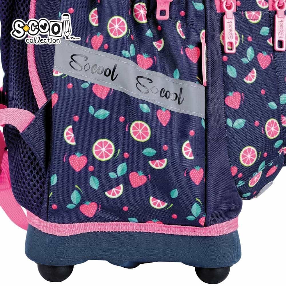 - Ghiozdanul este realizat din poliester 600D cu grafica BERRY GOOD.