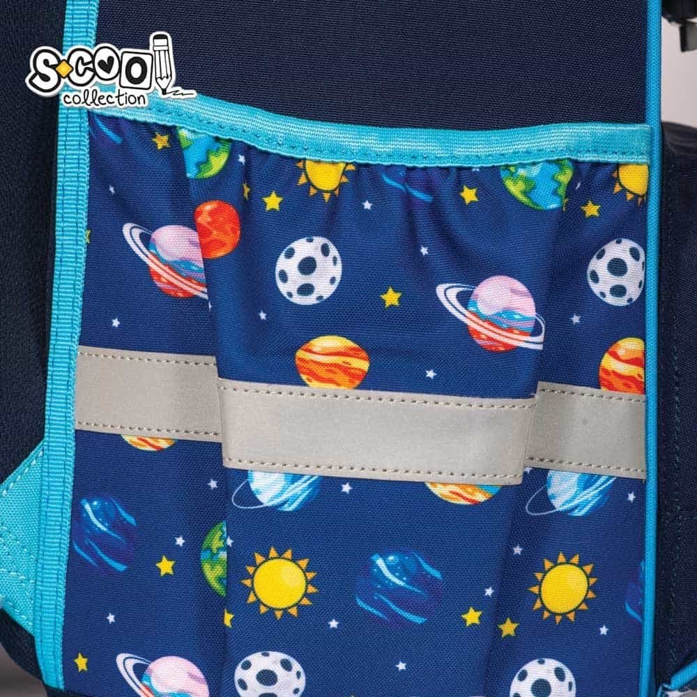 - Ghiozdanul anatomic de calitate premium are carcasa tare, un compartiment cu separator, buzunar transparent pentru orar si inchidere magnetica, buzunar frontal termoizolat pe partea din fata, doua buzunare laterale, bretele buretate, ajustabile, cu sistem integrat de reglare a inaltimii si catarama transversala, maner, spate cu perne buretate si curea pentru fixare pe talie, baza din spuma EVA cu trei picioruse din plastic, benzi reflectorizante, aplicatii decorative.