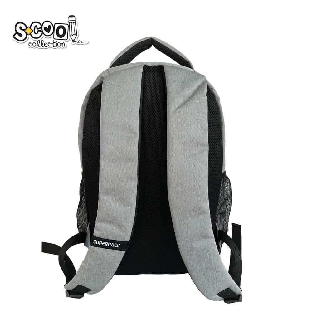 - Ghiozdanul are compartiment principal cu buzunar buretat pentru laptop, compartiment secundar, 3 buzunare frontale, 2 buzunare laterale, inchideri cu fermoar, bretelele buretate si ajustabile, maner cu triplu strat, spatele anatomic, buretat, baza cu suprafata PVC, imprimeu PVC „SUPER PACK".