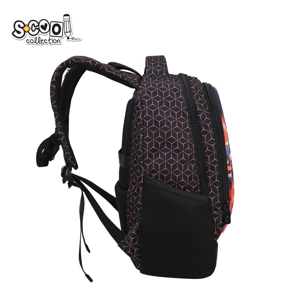 - Acesta are 1 compartiment principal, 1 buzunar frontal, 1 buzunar in partea din spate si 2 buzunare laterale. Compartimentul principal este prevazut cu buzunar, iar buzunarul frontal cu organizator si port chei. Organizatorul este compus din 2 buzunare (18×23 cm, 16×23 cm), 4 buzunare pentru instrumente de scris si 1 buzunar din plasa, ce are inchidere cu fermoar (13×10 cm). Obiectele depuse in buzunarul frontal sunt protejate de carcasa 3D intarita.