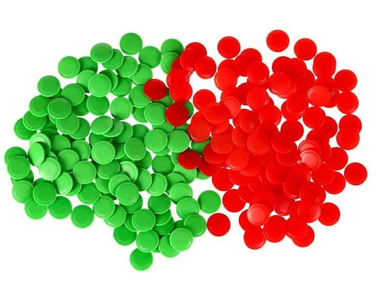 Fleșete pentru numărarea scorurilor: verde 100 buc., roșu 100 buc.