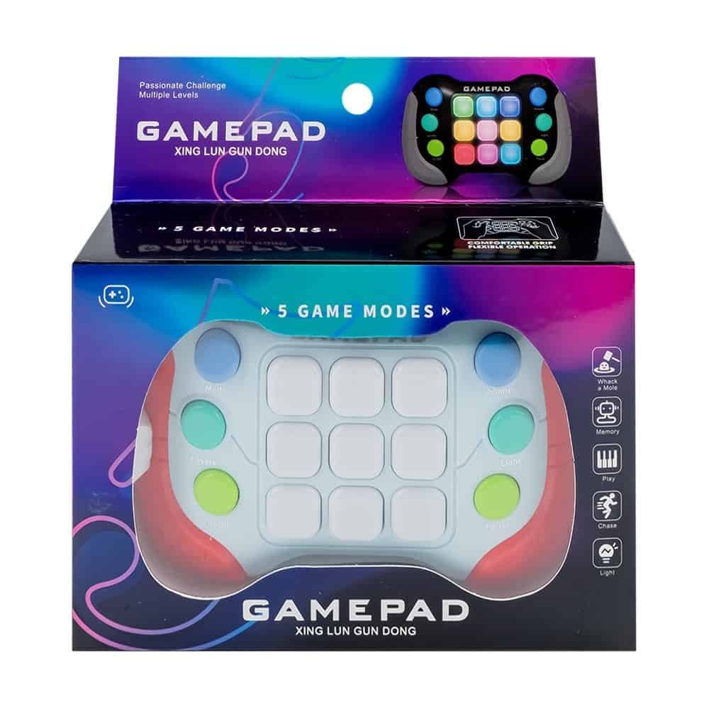 - Jocul 5 in 1, ofera 4 moduri de utilizare Whack-a-Mole, Memorie, Muzica si Chase Mode, plus functia de ritmuri luminoase in 7 culori, pentru a mentine interesul si angajamentul copiilor. Jocurile activate sunt: 1. Whack-a-Mole consta din cinci runde, fiecare cu un numar randomizat de lumini. Loviti toate tastele si continuati cu urmatoarea runda. Dupa finalizarea a cinci runde in limita de timp, va fi redat efectul sonor de felicitare, iar apoi va incepe direct urmatorul nivel. Acest mod are un total de 999 de niveluri, iar limita de timp devine mai scurta si dificultatea creste pe masura ce nivelul promoveaza. Daca grestiti jocul este resetat. 2. Modul de memorie consta din cinci runde, fiecare runda aprinzand aleatoriu doua lumini, fiecare nivel crescand in dificultate cu cate 1 lumina pe runda. Acest mod are un total de 8 niveluri. 3. Mod muzica: Apasati butoanele 1-8 pentru a reda cele 8 note muzicale. Apasati butonul 9 o data si se va reda efectul sonor de pornire inregistrare, iar notele vor fi inregistrate in acelasi timp cu redarea, capacitatea maxima de inregistrare fiind de 200 note. Apasati din nou butonul 9 si va fi redat sunetul redare inregistrare, apoi notele trebuie redate secvential. 4. Mod Chase: Apasati butoanele corespunzatoare in ordinea de aprindere. Daca mai mult de 4 lumini de urmarire nu se sting cu succes, jocul esueaza. Pentru fiecare 20 de lumini care sunt urmarite si stinse cu succes, este redat un efect sonor special pentru a sarbatori si urmarirea este repornita cu intervale mai scurte intre lumini. Scorul maxim in acest mod este 100. Daca bateria este scoasa, inregistrarea maxima va fi resetata.