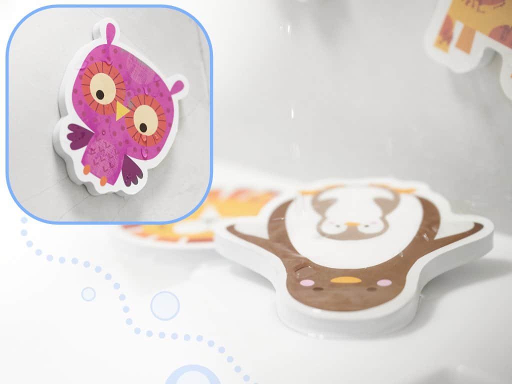Toate piesele sunt fabricate din spumă moale și durabilă. Nu aveți nevoie de lipici pentru ca puzzle-urile să se lipească de cadă sau de gresie. Pur și simplu le înmuiați în apă.