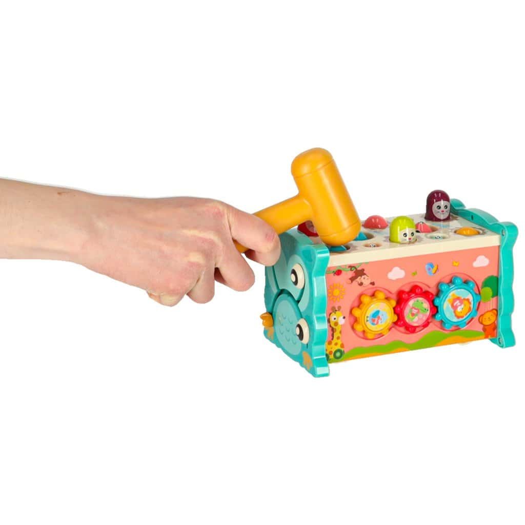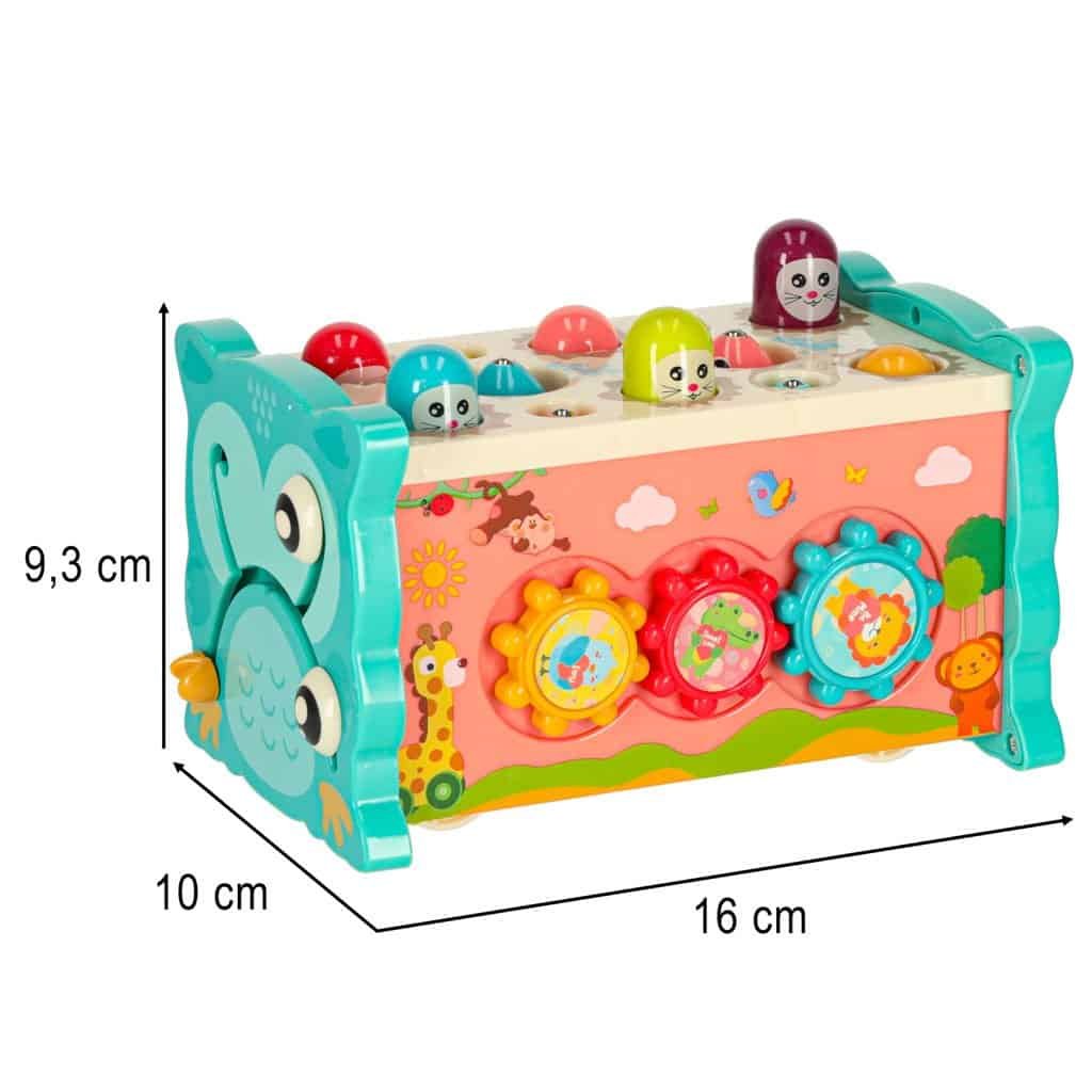 Una dintre principalele atracții este posibilitatea de a ciocăni micile creaturi care apar, aducând bucurie micuțului dvs. și exercitându-i reflexele.
