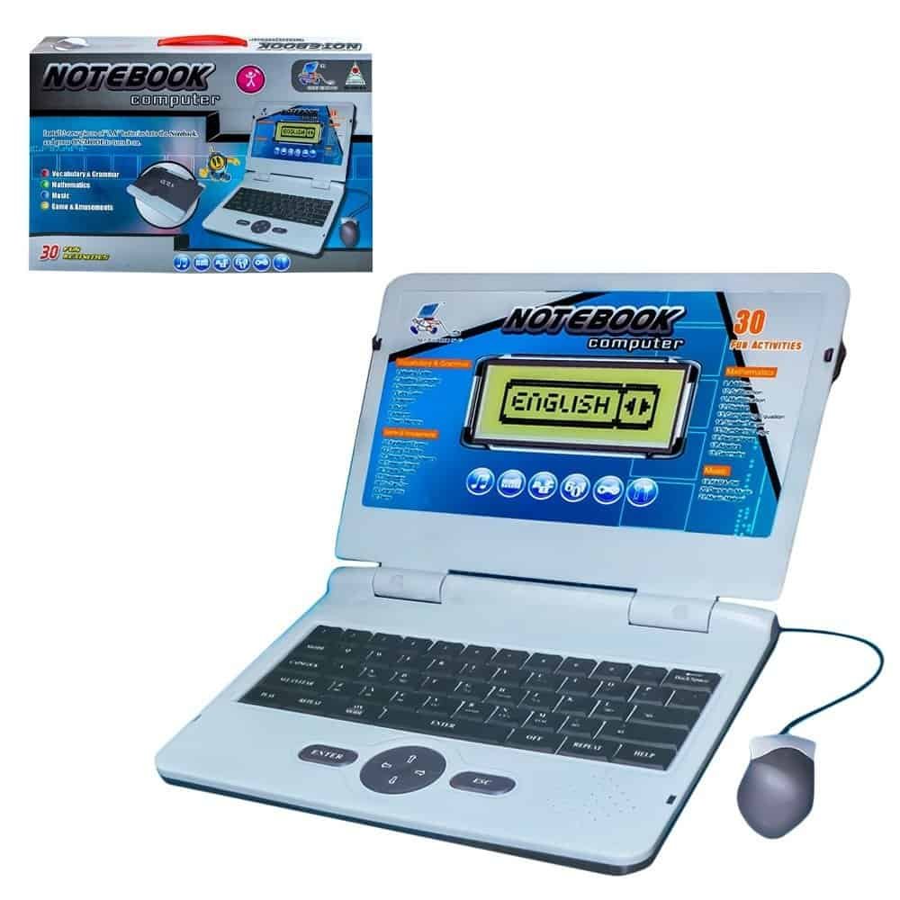 - Laptopul educational are ecran LCD si 25 de functii in engleza: 15 sectiuni gramaticale, 7 sectiuni dedicate matematicii, 1 joc muzical, afisare ceas si 1 joc de tastare.