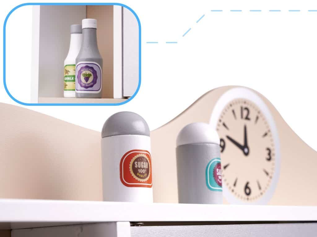 Are multe dintre funcțiile unei bucătării adevărate și este dotată cu chiuvetă, robinet, aragaz, cuptor cu microunde, precum și cu rafturi și dulapuri! Acest lucru va face ca, în viitor, să vă fie mult mai ușor și mai distractiv să vă găsiți drumul spre o bucătărie adevărată.