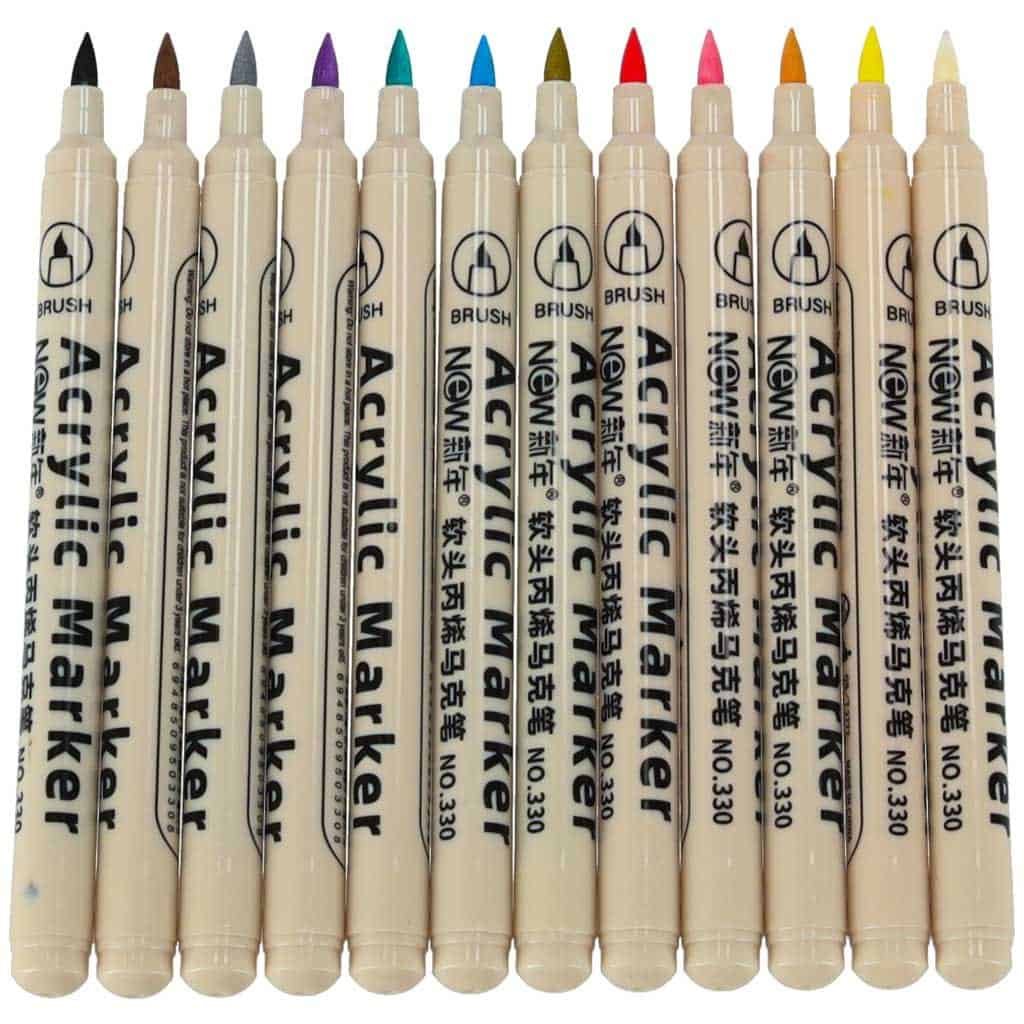 Markere acrilice impermeabile pentru pictat țesături și pietre 12 buc