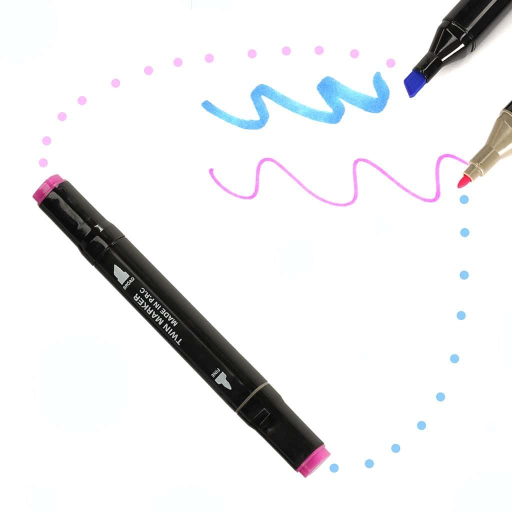 Fiecare marker are două vârfuri, un vârf lat - ideal pentru a picta suprafețe mai mari și un vârf subțire - pentru a crea linii subțiri și mai precise pentru a adăuga detalii. Vârful corect va asigura o detaliere sau o acoperire mai bună a desenului.