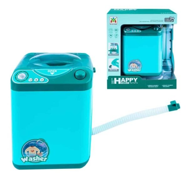 Masina de spalat pentru copii este realizata din material plastic, emite sunet de centrifugare, imita realitatea si cu siguranta va starni curiozitatea micutelor gospodine.