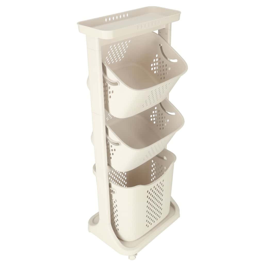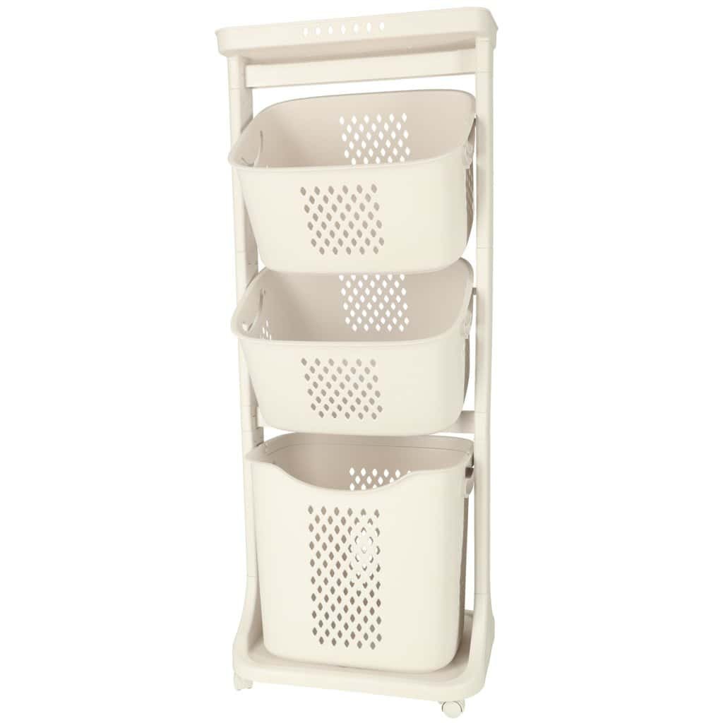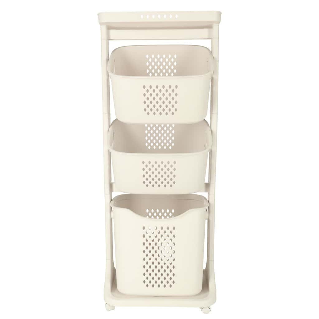 Organizator pe trei niveluri pe roți pentru organizarea ușoară a unei varietăți de articole. Cel mai mare coș are un mâner pentru a fi transportat cu ușurință. Material: plastic. Dimensiuni: 44 cm x 109 cm x 32 cm.