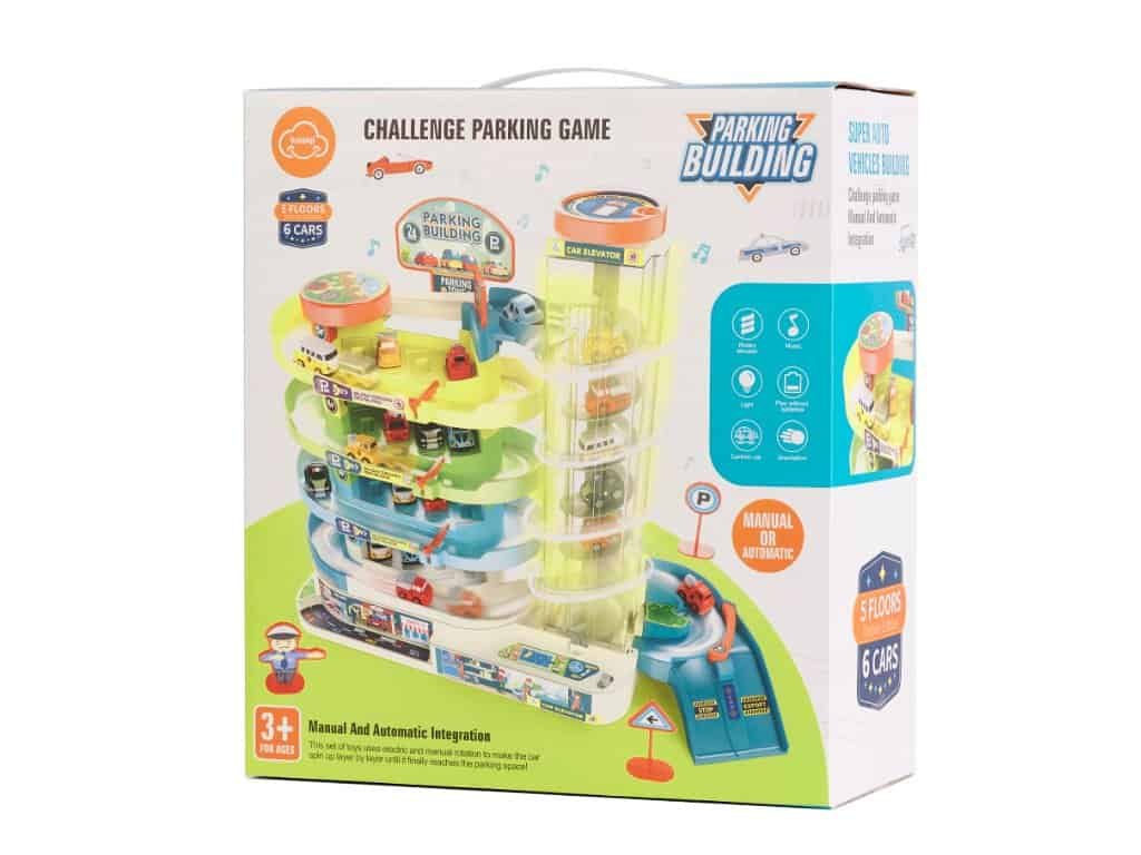 Parcare electrică senzațională cu lift. Echipat cu 4 nivele și un lift automat. Jocul sprijină dezvoltarea corectă a copilului mic și dezvoltă abilitățile manuale. Material: plastic. Sursa de alimentare: 3 x AA (nu sunt furnizate). Dimensiunile produsului: 33×13,5×30,5 cm.