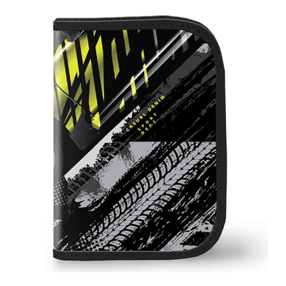 - Penarul din material textil are 1 fermoar din plastic, 2 extensii si este echipat 30 piese: ascutitoare, radiera, rigla (15cm/6inch), 3 creioane grafit, 12 carioci, 12 creioane colorate.