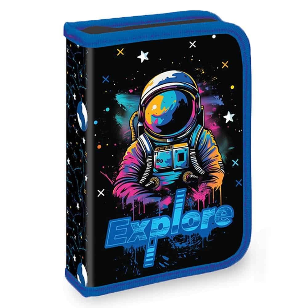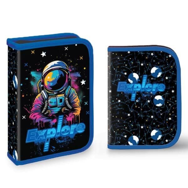 - Penarul este realizat din poliester cu grafica DREAM BIG si are carcasa cartonata si buretata, 2 extensii cartonate, inchidere cu fermoar, 30 benzi elastice pentru fixarea echipamentului si 2 buzunare.