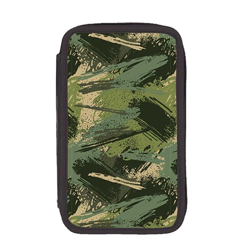 - Penarul din material textil are 2 fermoare din plastic si este echipat cu 29 piese: ascutitoare, radiera, 3 creioane grafit, 12 carioci, 12 creioane colorate.