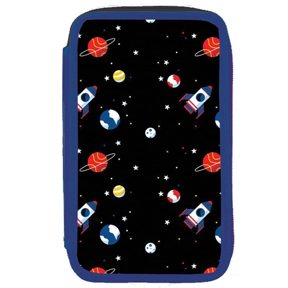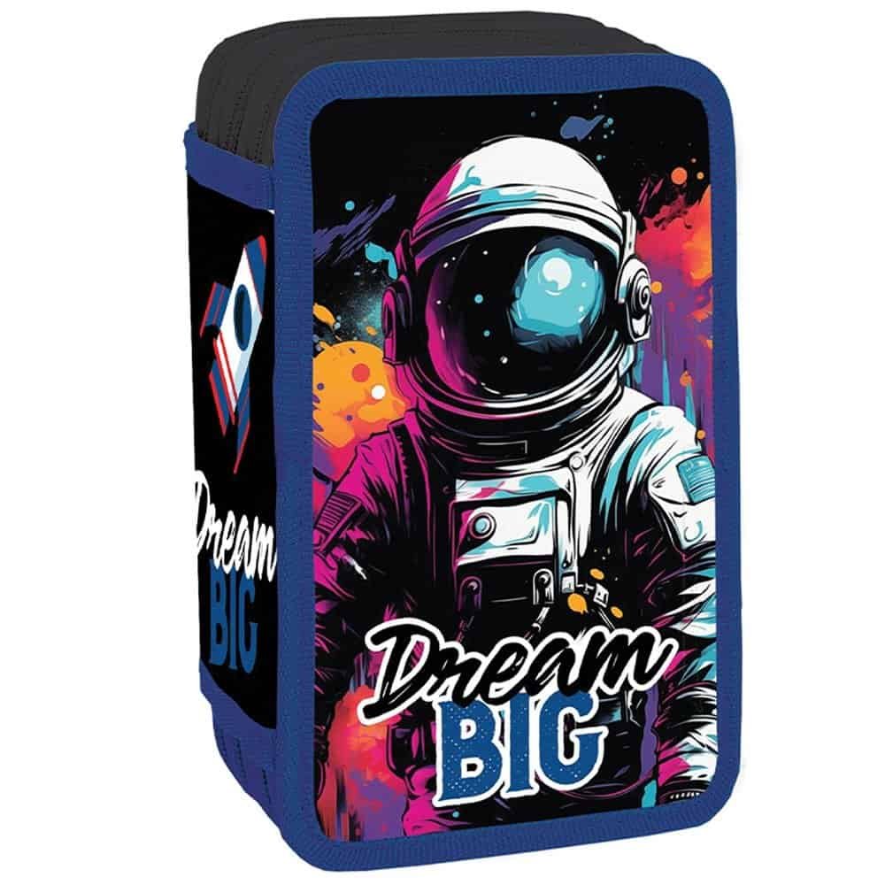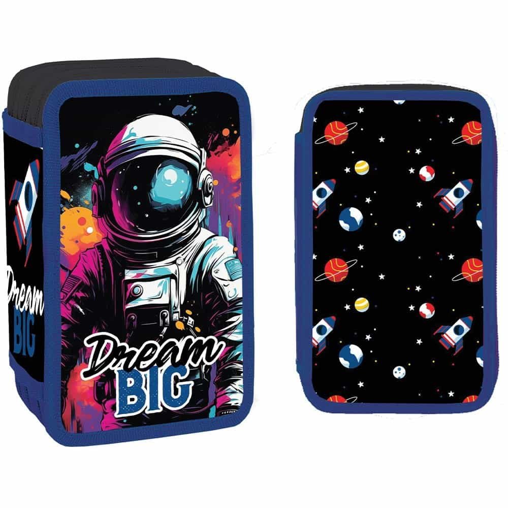 - Penarul este fabricat din poliester cu grafica DREAM BIG si are 3 compartimente cu inchidere cu fermoare, carcasa buretata si cartonata si benzi elastice pentru fixare articole.