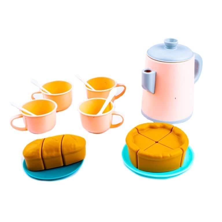 - Kitul contine: 1 ibric cu capac, 4 cesti, 4 lingurite, 1 platou, 1 farfurie, 1 pizza, 1 paine si 1 autocolant.
