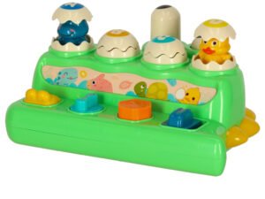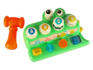 Vârsta: 18 luni +. Material: plastic. Culoare: verde cu elemente colorate. Culoarea ciocanului: portocaliu. Greutate: 375 g, ciocan 22 g. Dimensiuni ambalaj: 22.5 x 15.5 x 11cm