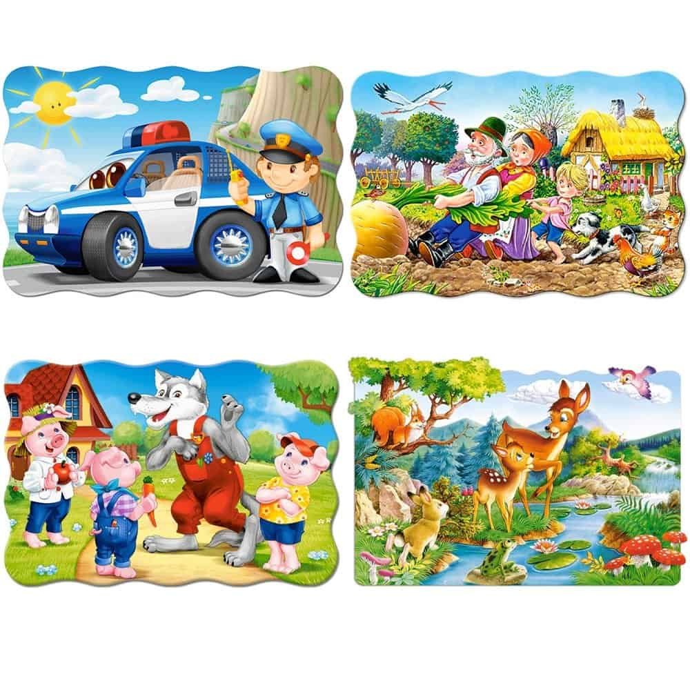 Aceast puuzle este recomandat pentru cei mai mici fani ai puzzle-urilor. Special pentru ei, puzzle-ul cu piese foarte mari este usor de asamblat. Ilustratiile colorate ii vor ajuta pe copii sa descopere o lume fascinanta, in imagini, a basmelor si animalelor.