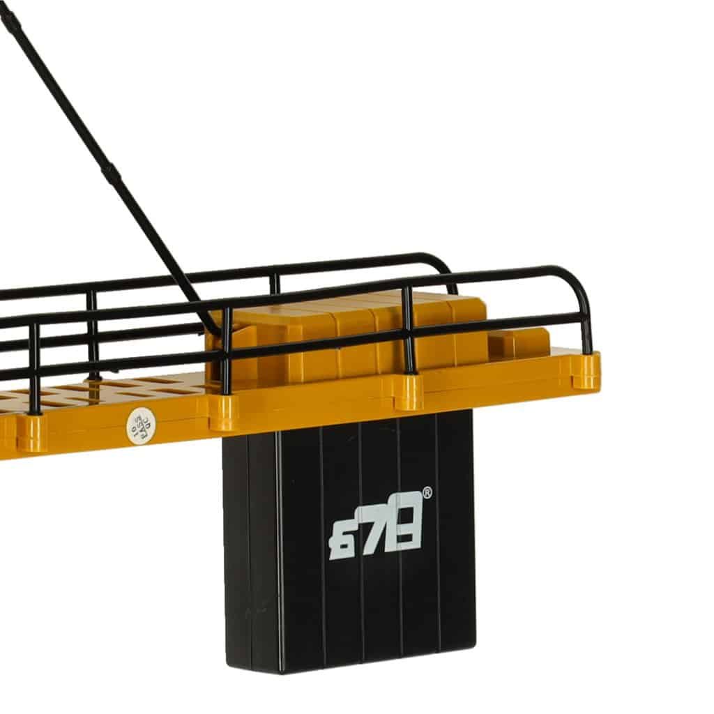 Macara controlată de o telecomandă conectată la jucărie prin intermediul unui cablu. Brațul brațului se rotește în jurul axei sale, iar cablul cu cârlig se ridică și coboară. Alimentare: 4 baterii AA. Înălțime: până la 128 cm.