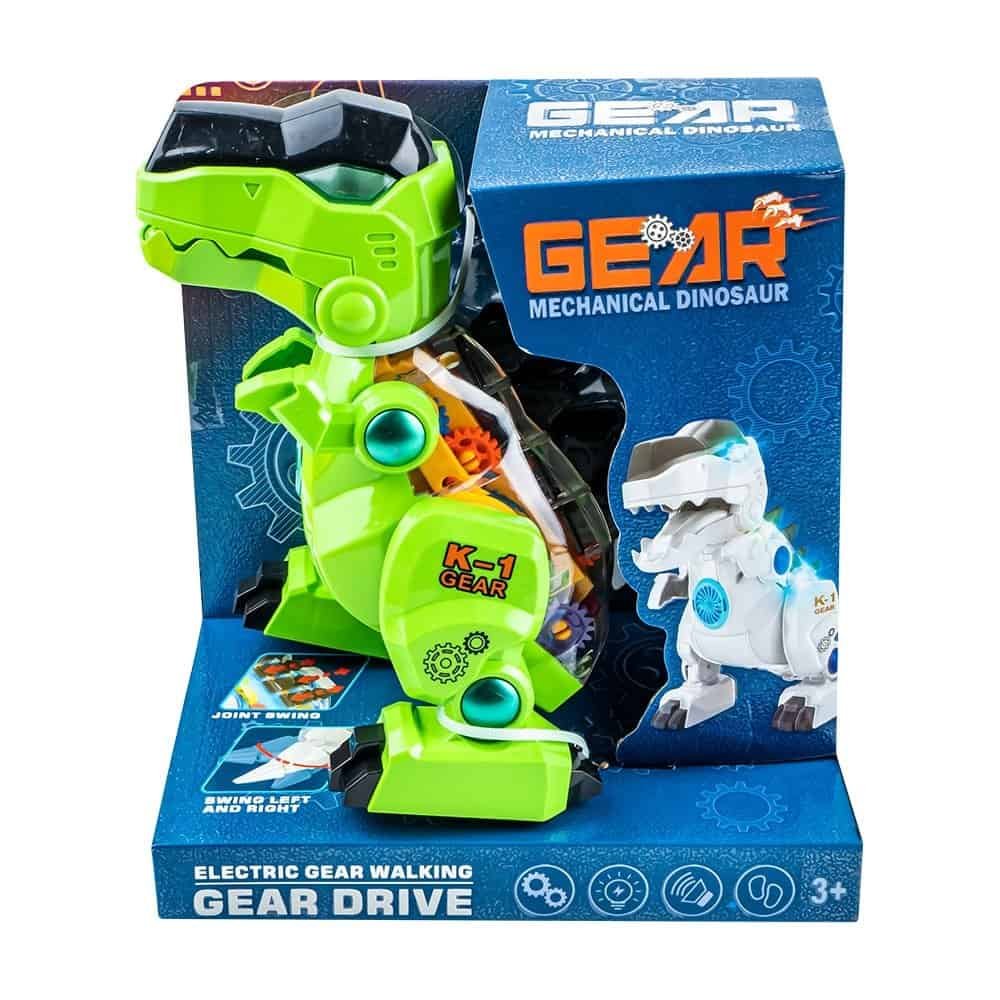 - Jucaria are forma de dinozaur cu carcasa transparenta si interior multicolor cu mecanism ingenios de rotite dintate cu ajutorul caruia opilasii pot fi invatati, in timpul jocului, notiuni despre angrenaje si mecanisme.