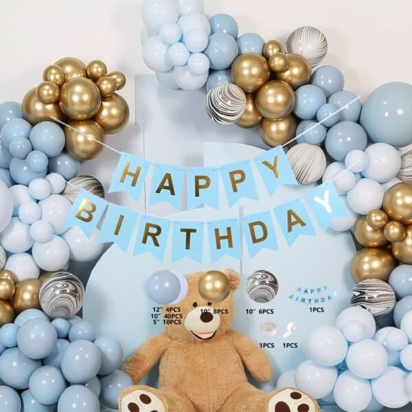 - Setul ROBEN TOYS este alegerea ideala pentru a transforma orice eveniment intr-o sarbatoare memorabila. Setul contine baloane din latex de calitate, in nuante elegante de albastru, completate de cele aurii si cele marmorate, ce adauga un efect vizual spectaculos. Pachetul include 54 baloane unicolore (4 bucati de 30.5 cm, 40 bucati de 25.5 cm si 10 bucati de 12.7 cm), 8 baloane aurii de 25.5 cm si 6 baloane marmorate de 25.5 cm, o ghirlanda HAPPY BIRTHDAY din carton, alaturi de accesorii pentru montaj: o rola de rafie, o rola de banda adeziva transparenta si o rola cu buline dublu adezive.