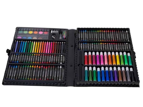 Un set de artă fantastic într-o geantă de transport practică. Conține multe ustensile utile: diverse tipuri de markere, creioane și vopsele și alte accesorii. Ideal pentru munca la școală sau acasă. Setul este format din 168 de elemente. Dimensiunile cutiei: 39x29x4cm.