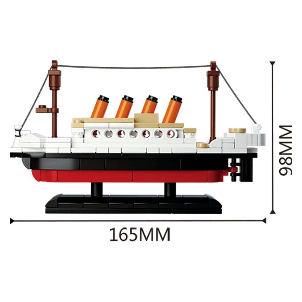 - Blocurile de dimensiuni mici sunt realizate din plastic ABS, cu model de prindere divers, convenabil si usor de imbinat, ajutandu-va sa realizati impresinanta nava Titanic. Cu instructiuni detaliate pas cu pas, va veti atinge obiectivul. Piesele articulate fac ca hornurile si carma sa fie mobile. Datorita blocurilor special concepute, distractia jocului de constructie capata o forma noua, interactiva.
