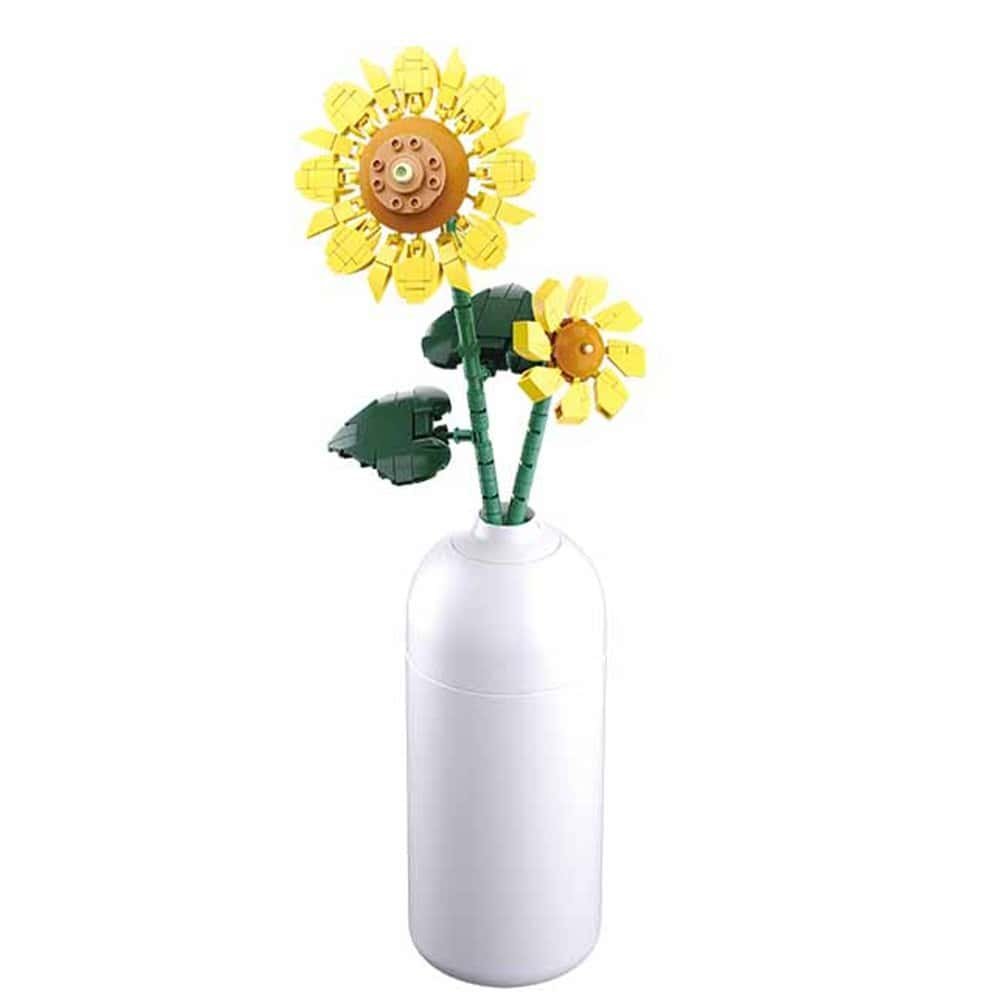 Conectati blocurile pentru a crea minunate flori de floarea-soarelui, care nu se ofilesc niciodata si admirati-le, asezandu-le in vaza ce o asamblati!