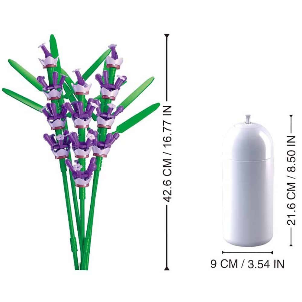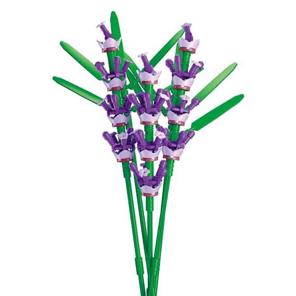 - Setul contine 258 piese insotite de instructiuni de montaj in imagini. Din cele 258 piese, 11 vor fi utilizate pentru asamblarea vazei si 247 pentru contruirea unui buchet seducator de lavanda.